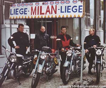 Weitere Bekannte von der Victoria- IG sind mittlerweile eingetroffen, um viel Glück zu wünschen. Um 10 Uhr endlich geht es los und, wieder perfekt von der Royal Motor Union organisiert, lotst ein Sarolea- Fahrer die Victorianer durch die Innenstadt in Richtung Spa- Francorchamps. Am Stadtrand ein kurzes "Au revoir" und die Motorräder mit Servicebus sind "en route" auf der ersten Tagesetappe, die in die Gegend von Landau führen soll.