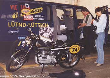 Bei Cannapees, Champagner und einem exzellenten Menü werden Fotos der Langsteckenfahrten angeschaut, die in den letzten Jahren von Henri Bovy und seinem Bruder Michel organisiert wurden (Anfragen in franz. Sprache an: michel.bovy@euronet.be). Eine Person in der Runde hatte eine besondere Geschichte zu erzählen, Monsieur Sterkendries, selbst Teilnehmer der Langstreckenfahrt 1954 mit einer 500er FN, war mit seinen 84 Jahren aus Brüssel angereist, um die Victorianer zu begrüßen und viel Glück für die Fahrt zu wünschen.
